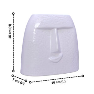 Crafted from high-quality ceramic, it features a textured matte-glossy finish that enhances its abstract charm. Measuring 16 cm (L) x 7 cm (D) x 15 cm (H), it’s ideal for holding small floral arrangements or standing solo as a conversation-starting sculpture.