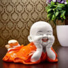 Laughing Monk Buddha Showpiece for Home Decor (Orange & White) Marble – 4 Inch