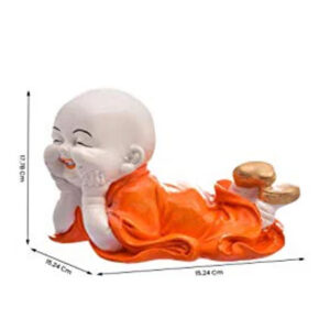 Baby Monk Buddha Idol Showpiece for Home Decor (Orange) Marble – 4 Inch quantity