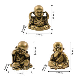 / Baby Monk Buddha Idol Showpiece for Home Decor, Set of 3 (Golden) Polyresin – 5.5 Inch