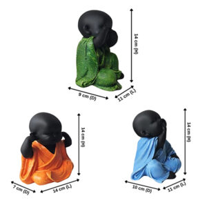 Baby Monk Buddha Idol Showpiece for Home Decor, Set of 3 (Multicolor) Polyresin – 5.5 Inch