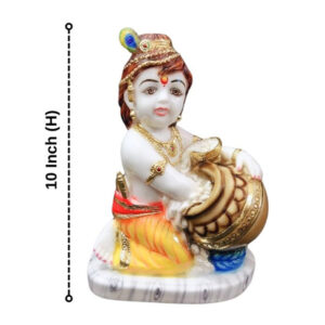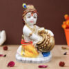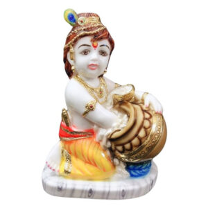 The Bal Krishna Makhan Chor idol from GW Creations is a delightful embodiment of youthful playfulness and divine charm, expertly carved from premium marble. This 10-inch masterpiece captures the essence of Lord Krishna as the beloved butter thief, a symbol of joy and mischievous innocence, making it a wonderful addition to any home decor. The idol’s intricate detailing and smooth finish reflect the craftsmanship of skilled artisans, ensuring it is a captivating centerpiece for any home or spiritual setting.