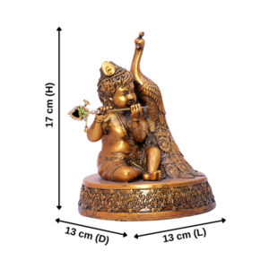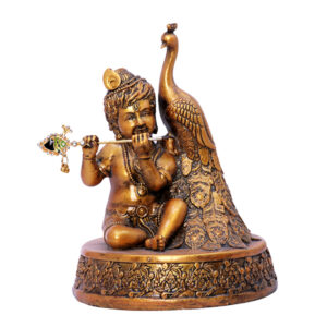 Antique Bal Krishna with Peacock Idol Showpiece (Antique Gold) Polyresin – 7.5 Inch