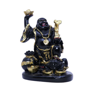 Enhance your home or office decor with this exquisite Black & Gold Laughing Buddha Statue. Crafted from high-quality resin, this Feng Shui idol symbolizes prosperity, wealth, and happiness. The intricate design and glossy finish make it a perfect decorative piece for homes, offices, and spiritual spaces. Ideal for gifting on special occasions like housewarming, birthdays, or festive celebrations.