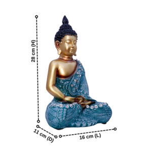 Add a touch of peace and spirituality to your space with this beautifully crafted Blue & Gold Meditating Buddha Statue. This stunning piece showcases Buddha in a tranquil meditation pose, symbolizing inner harmony and mindfulness. The combination of gold detailing with an elegant blue robe adorned with intricate patterns and embellishments creates a sophisticated and calming aesthetic. Ideal for home decor, meditation areas, yoga studios, offices, or as a meaningful gift.