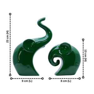 Elephant Showpiece for Home Decor, Set of 2 (Green) Polyresin – 7.5 Inch