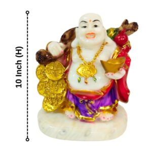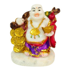 Enhance positivity and attract prosperity with this vibrant Laughing Buddha statue. Made from high-quality marble, it represents wealth, happiness, and success. It is ideal for the home, office, as a thoughtful Feng Shui gift for good fortune.