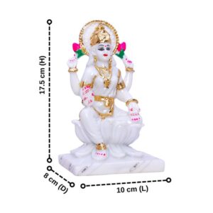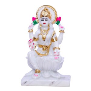 The Goddess Maa Laxmi idol showpiece from GW Creations is an exquisite representation of prosperity, abundance, and divine grace, meticulously crafted from high-quality marble. Standing at a graceful 7 inches, this stunning piece is adorned with luxurious golden foil work, which enhances its regal appearance and makes it a perfect addition to both home and office spaces. The idol beautifully captures the serene and benevolent essence of Maa Laxmi, the goddess of wealth and prosperity, making it a cherished centerpiece that inspires positivity and success. The intricate detailing and glossy finish reflect the exceptional craftsmanship of skilled artisans, ensuring it stands out as a distinguished addition to any environment.