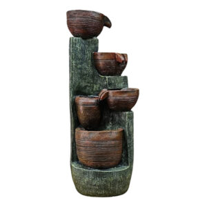 The fountain’s intricate design captures the beauty of flowing water, complemented by the durable polyresin material that ensures long-lasting quality.