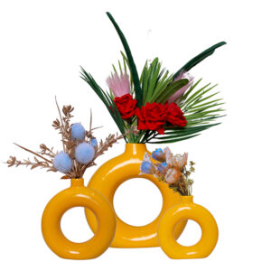 Donut-Shaped Flower Vases for Home Decor, Set of 3 (Yellow) Polyresin – 8 Inch