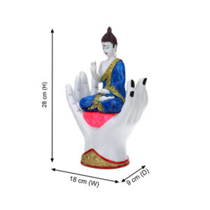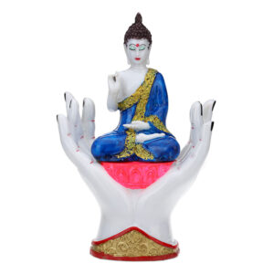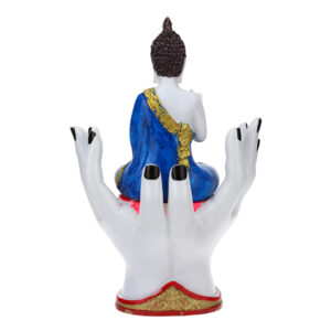 • Lord Gautam Buddha, a symbol of peace and enlightenment, is beautifully depicted in this statue sitting on a palm.