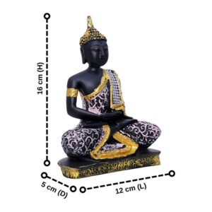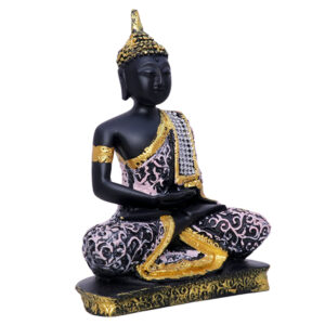 Infuse charm and peace into your space with this serene Buddha idol dressed in soft pink and gold over a matte black finish. Made from high-quality resin, this beautifully detailed 16 cm figurine is a perfect décor piece or a thoughtful gift for loved ones.