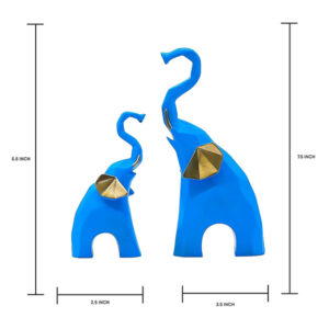 Elephant Showpiece for Home Decor, Set of 2 (Blue) Polyresin – 7.5 Inch