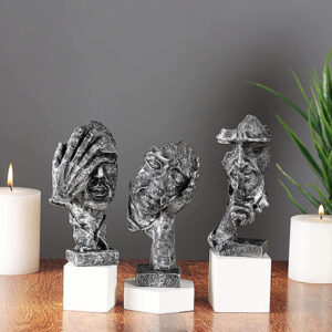 Human Faces Showpiece for Home Decor, Set of 3 (Blue) Polyresin – 6 Inch