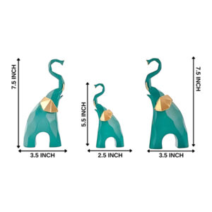 Elephant Showpiece for Home Decor, Set of 3 (Green) Polyresin – 7.5 Inch