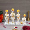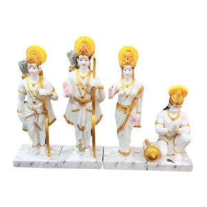 The Ram Darbar idol from GW Creations is an exquisite representation of divine harmony and familial devotion, meticulously crafted from high-quality marble. This 24-inch masterpiece beautifully captures the essence of Lord Rama, Sita, Lakshman, and Hanuman, making it a perfect addition to any home temple. The idol’s intricate detailing and smooth finish reflect the exceptional skill of talented artisans, ensuring it brings a sense of peace and inspiration to any home or spiritual setting.