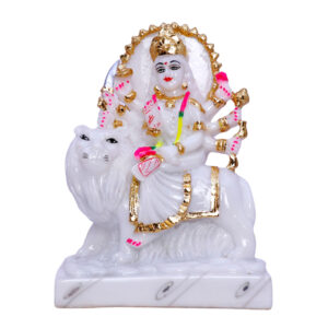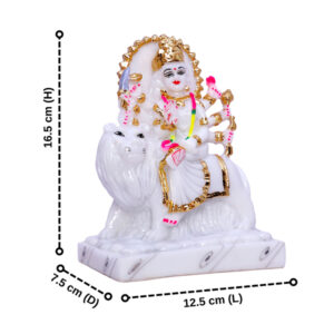 The Goddess Ma Durga idol from GW Creations is an exquisite embodiment of strength, protection, and divine grace, meticulously crafted from high-quality marble. Standing gracefully at 7 inches, this stunning piece is adorned with luxurious golden foil work, enhancing its regal appearance and making it a perfect addition to both home and office spaces. The idol beautifully captures the powerful and serene essence of Ma Durga, known for her ability to vanquish evil and protect devotees, making it a cherished centerpiece that inspires courage and spiritual strength. The intricate detailing and glossy finish reflect the exceptional craftsmanship of skilled artisans, ensuring it stands out as a distinguished addition to any environment.