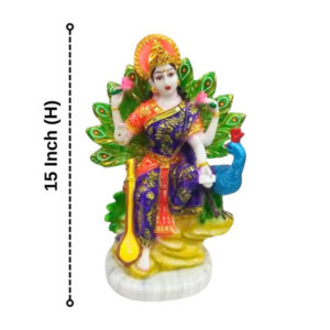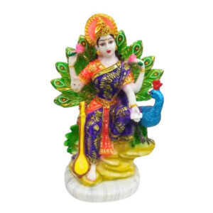 Invite wisdom, knowledge, and prosperity into your space with this beautifully crafted Goddess Saraswati idol. This exquisite marble figurine showcases Goddess Saraswati seated gracefully with a veena, symbolizing learning, arts, and wisdom. Its intricate details and vibrant hand-painted colors make it a perfect addition to home temples, study rooms, and offices. It is also an ideal gift for students, teachers, and devotees on Saraswati Puja and other occasions.
