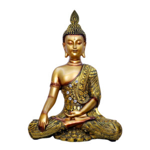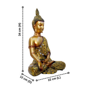 Golden Meditating Buddha Statue – Decorative Resin Sculpture for Home, Office, and Spiritual Spaces (L-22cm,B-12cm,H-34cm)