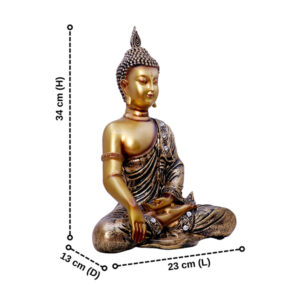 Enhance your home or workspace with this exquisitely crafted Golden Meditating Buddha Statue. Designed with intricate details, this statue features a serene Buddha in a classic meditation pose, symbolizing peace, enlightenment, and harmony. The golden and bronze finish, along with elegant embellishments, adds a touch of sophistication and spirituality to any environment. Perfect for home decor, meditation rooms, yoga studios, offices, or as a meaningful gift for loved ones.