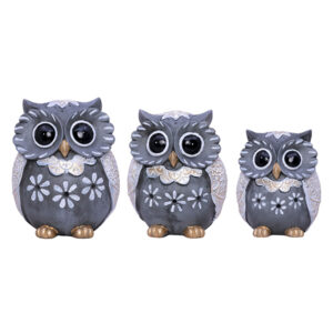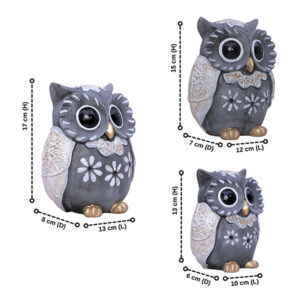 Handcrafted Brown & Green Owl Figurine Set – Decorative Showpiece with Three Different Sizes (Large: 17cm H x 13cm L x 8cm D, Medium: 15cm H x 12cm L x 7cm D, Small: 13cm H x 10cm L x 6cm D)