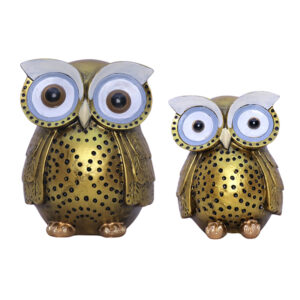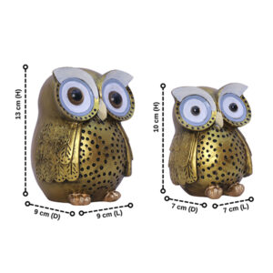 Handcrafted Owl Figurine Set – Decorative Showpiece With Two Different Sizes (Large: 13cm H x 9cm L x 9cm D, Small: 10cm H x 7cm L x 7cm D)