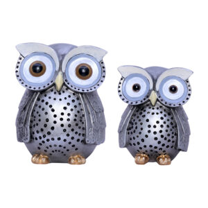 Handcrafted Owl Figurine Set – Decorative Showpiece With Two Different Sizes (Large: 13cm H x 9cm L x 9cm D, Small: 10cm H x 7cm L x 7cm D)