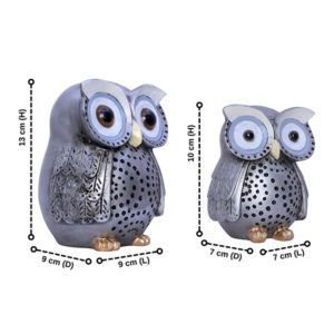 Add a touch of charm and elegance to your home with this beautifully handcrafted owl figurine set. Featuring two different sizes, these artistic showpieces are designed with intricate details, a stylish grey finish, and golden accents. Perfect for decorating your living space, office, or gifting to a loved one, these owls bring a unique aesthetic appeal to any setting.
