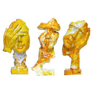 Human Faces Showpiece for Home Decor, Set of 3 (Mustard) Polyresin – 6 Inch