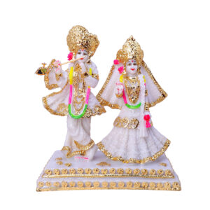 Radha Krishna Marble Divine Idol With Golden Foil Work – 9 Inch