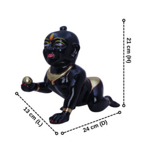 / Laddu Gopal Krishna Idol Showpiece for Home Decor, Golden Foil Work (Black) Marble – 8 Inch