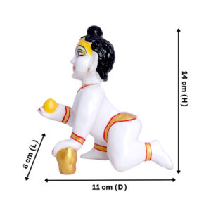 Laddu Gopal Krishna Idol Showpiece for Home Decor (White) Marble – 6 Inch