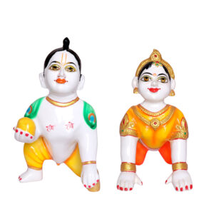 / Laddu Gopal with Radha Rani Idol Showpiece for Home Decor (Orange) Marble – 13 Inch