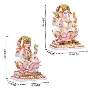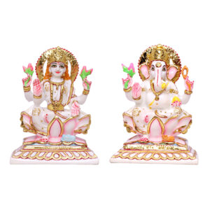The Laxmi Ganesh Idol Statue, a stunning showpiece crafted from marble by GW Creation, features a beautifully intricate design.