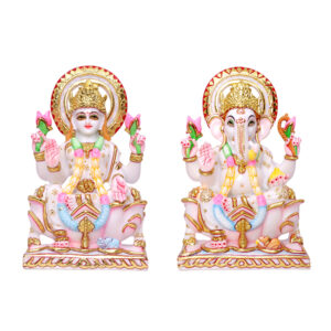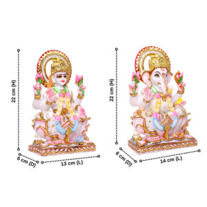 Laxmi-Ganesh Idol Showpiece for Home Decor (White) Marble – 9 Inch
