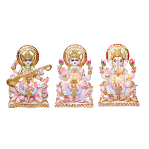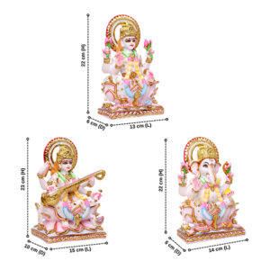 This elegant set showcases the divine trio of Laxmi, Ganesh, and Saraswati, meticulously sculpted from premium marble by the skilled artisans of GW Creations.