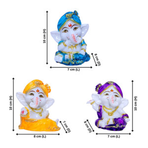 Little Ganesha Idol Showpiece Set of 3 (Multicolor) Marble – 4 Inch