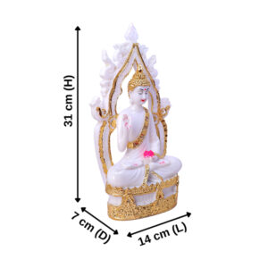 • Lord Gautam Buddha, a symbol of peace and enlightenment, is beautifully depicted in this statue sitting on a palm.