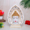 • Lord Gautam Buddha, a symbol of peace and enlightenment, is beautifully depicted in this statue sitting on a palm.