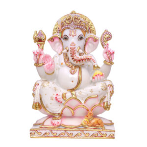 The statue’s intricate details beautifully capture Lord Ganesha’s strength, devotion, and wisdom.