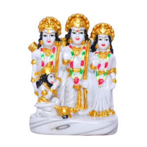 Bring divine blessings and positivity to your home with this beautifully crafted Ram Darbar idol. Featuring Lord Ram, Goddess Sita, Lakshman, and Lord Hanuman in a single frame, this intricately detailed resin statue symbolizes devotion, righteousness, and harmony. The golden accents and vibrant colors make it an ideal addition to your puja room, office, or a perfect gift for religious occasions.