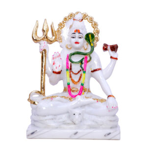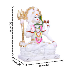 The Lord Shiva idol from GW Creations is an exquisite representation of divine power, tranquility, and spiritual wisdom, meticulously crafted from high-quality marble. Standing gracefully at 9 inches, this stunning piece is adorned with luxurious golden foil work, which adds a touch of opulence and elegance to its appearance. Ideal for both home and office spaces, the idol captures the serene and majestic essence of Lord Shiva, making it a cherished centerpiece that inspires peace and spiritual strength. The intricate detailing and glossy finish reflect the exceptional craftsmanship of skilled artisans, ensuring it stands out as a distinguished addition to any environment.