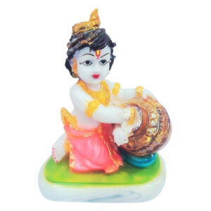 The Makhan Chor idol showpiece from GW Creations is a delightful embodiment of youthful playfulness and divine charm, meticulously crafted from high-quality marble. Standing gracefully at 6 inches, this exquisite piece captures the joyful essence of Lord Krishna as the beloved butter thief, symbolizing joy and mischievous innocence. The glossy finish enhances its elegant appearance, making it a perfect addition to home and office spaces. The idol’s intricate detailing reflects the exceptional craftsmanship of skilled artisans, ensuring it becomes a cherished centerpiece that radiates spiritual grace and playful energy.