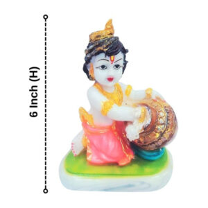This charming showpiece not only enhances your décor with its artistic beauty but also serves as a source of joy and inspiration, celebrating the divine playfulness and auspicious presence of Lord Krishna in a beautifully crafted form.