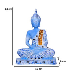 Meditation Buddha Showpiece for Home Decor (Blue & White) Polyresin – 9.5 Inch