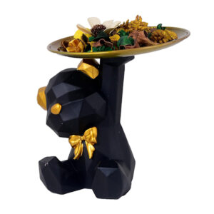 Elevate your tabletop décor with this Mini Geometric Bear Tray Holder. At 6 inches tall, this adorable bear statue features a striking polygonal design with gold-finished details and a functional tray held aloft. Whether you’re storing jewelry, candies, or desk accessories, this bear adds a modern, playful charm to any room.