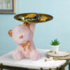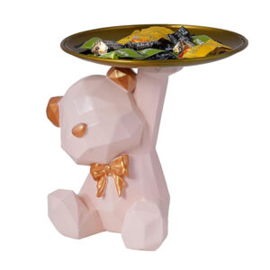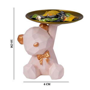 Brighten up your desk or side table with this adorable mini bear candy holder! Standing 10 cm tall and 4 cm wide, this pink bear with golden accents and a raised serving tray is perfect for holding small treats or trinkets. Its faceted design and cute bow tie make it a lovely gift or decor piece for any space.
