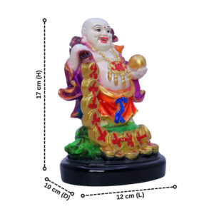 This vibrant Laughing Buddha statue symbolizes joy, wealth, and prosperity. Made from durable resin with multicolor detailing, it enhances positivity in any space. A perfect Feng Shui charm for home, office, or as a meaningful gift for happiness and success.
