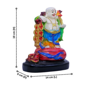 Invite prosperity and joy into your home with this vibrant Multicolor Laughing Buddha statue. This beautifully crafted Feng Shui idol features a sack of coins, a red ribbon, and a colorful robe, symbolizing wealth, happiness, and positive energy. Made from high-quality resin with a glossy finish, this eye-catching figurine is perfect for home decor, office desks, or as a thoughtful gift for loved ones.