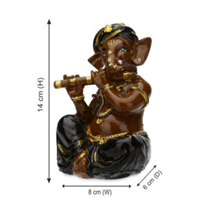 Musician Flute Ganesha Idol Showpiece (Brown & Black) Polyresin – 4 Inch